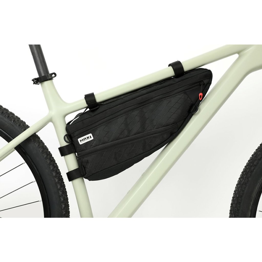 Rámová expediční brašna z řady MAX1 Bikepacking. Jednoduchá montáž na velcro pásky.Reflexní logo na boku.