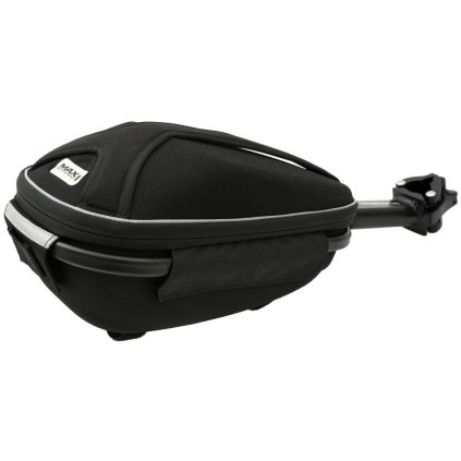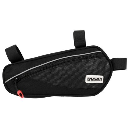 Kompaktní dvojitá brašna MAX1 na rámovou trubku s odnímatelnou kapsou uzpůsobenou pro mobilní telefon.Gumová membrána pro umístění sluchátek ve spodní části brašny.