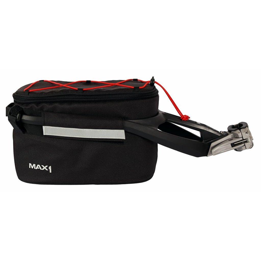 Trunky XL je inovativní kombinací brašny a nosiče z portfolia značky MAX1. Jedná se o praktickou brašnu v kombinaci s držákem na sedlovku pro průměr 25,4-34,9 mm, určenou pro krátké výlety nebo cestu do práce. Velice praktický a elegantní model. Držák je vyrobený z ABS plastu, samotný brašna z voděodolného materiálu. Tento model, je ta správná volba pro Vaše kolo či elektro kolo do města i do přírody. Voděodolný materiál, reflexní aplikace pro větší bezpečnost a viditelnost za zhoršených světelných podmínek, držák blikačky. Zkrátka tento model má vše co má mít a plně nahradí klasický koš na nosič. Na vrchním víku brašny je ještě praktický gumicuk pro připevnění např. přilby nebo větrovky.Specifikace