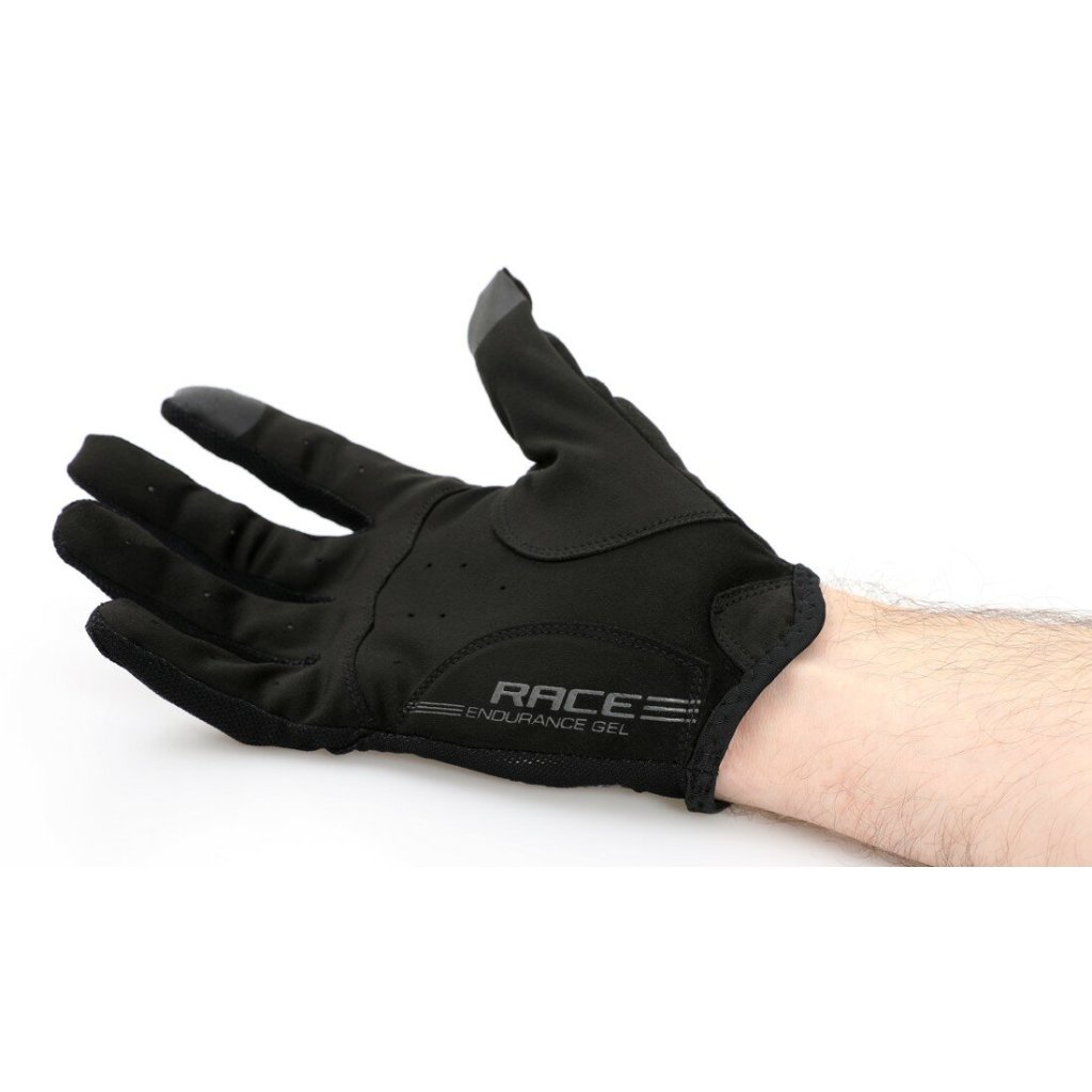Ovládání telefonu v rukavicích? Žádný problém! Dotyková úprava na palci a ukazováčku umožňuje přesně ovládat jakékoliv chytré zařízení. Speciální vrstva tenkého tlumícího gelu "RACE ENDURACE GEL" na vnější části dlaně uleví rukám v nejvíce exponováné části a zároveň nijak neovlivňuje úchop řidítek. Rukavice jsou tak ideální pro jezdce, kteří očekávají dokonalý cit mezi rukou a řidítkem.