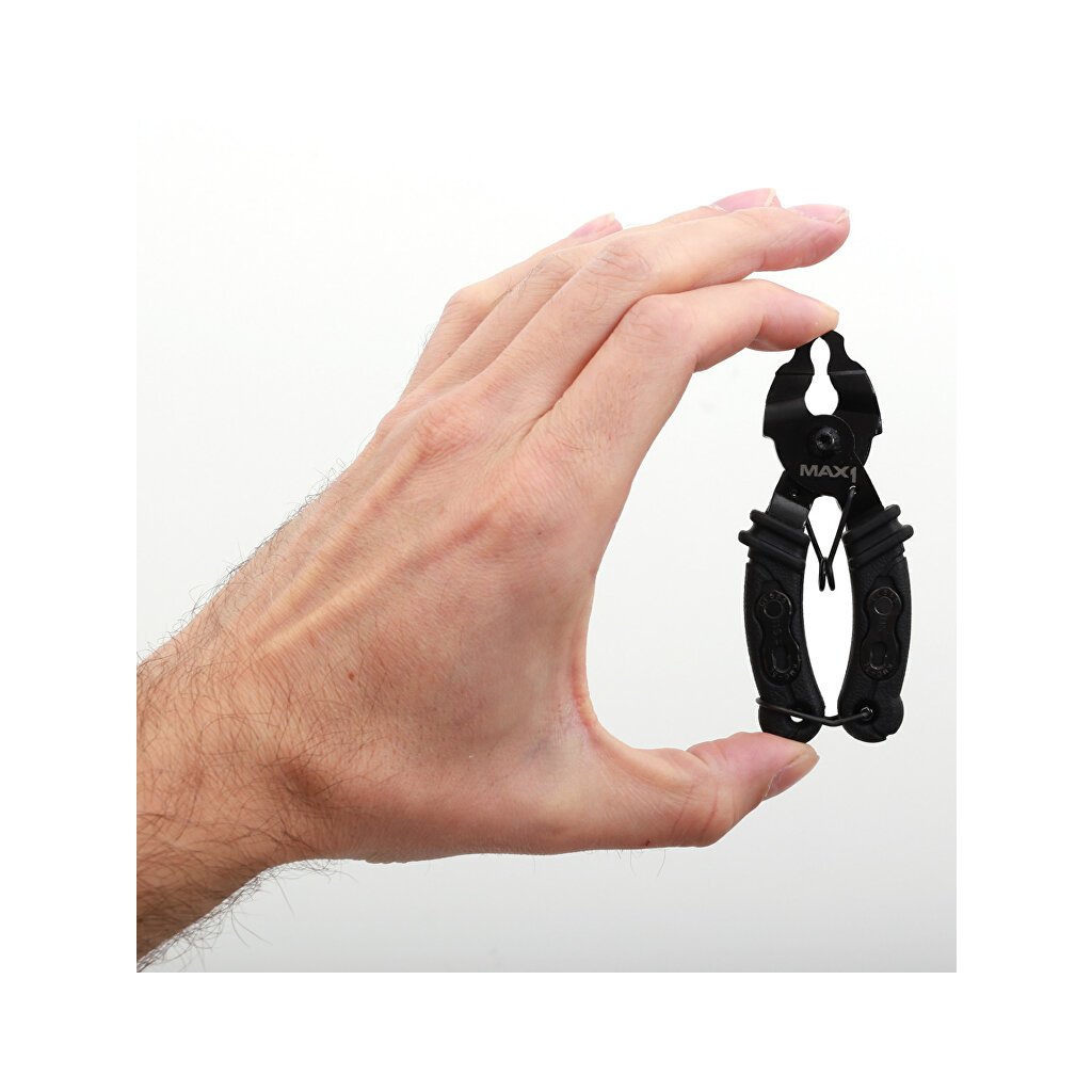 Mini kleště MAX1 pro spojení a rozpojení rychlospojky řetězu.Součástí madla jsou dva úložné prostory s magnetickým uchycením rychlospojky (rychlospojka není součástí balení).
