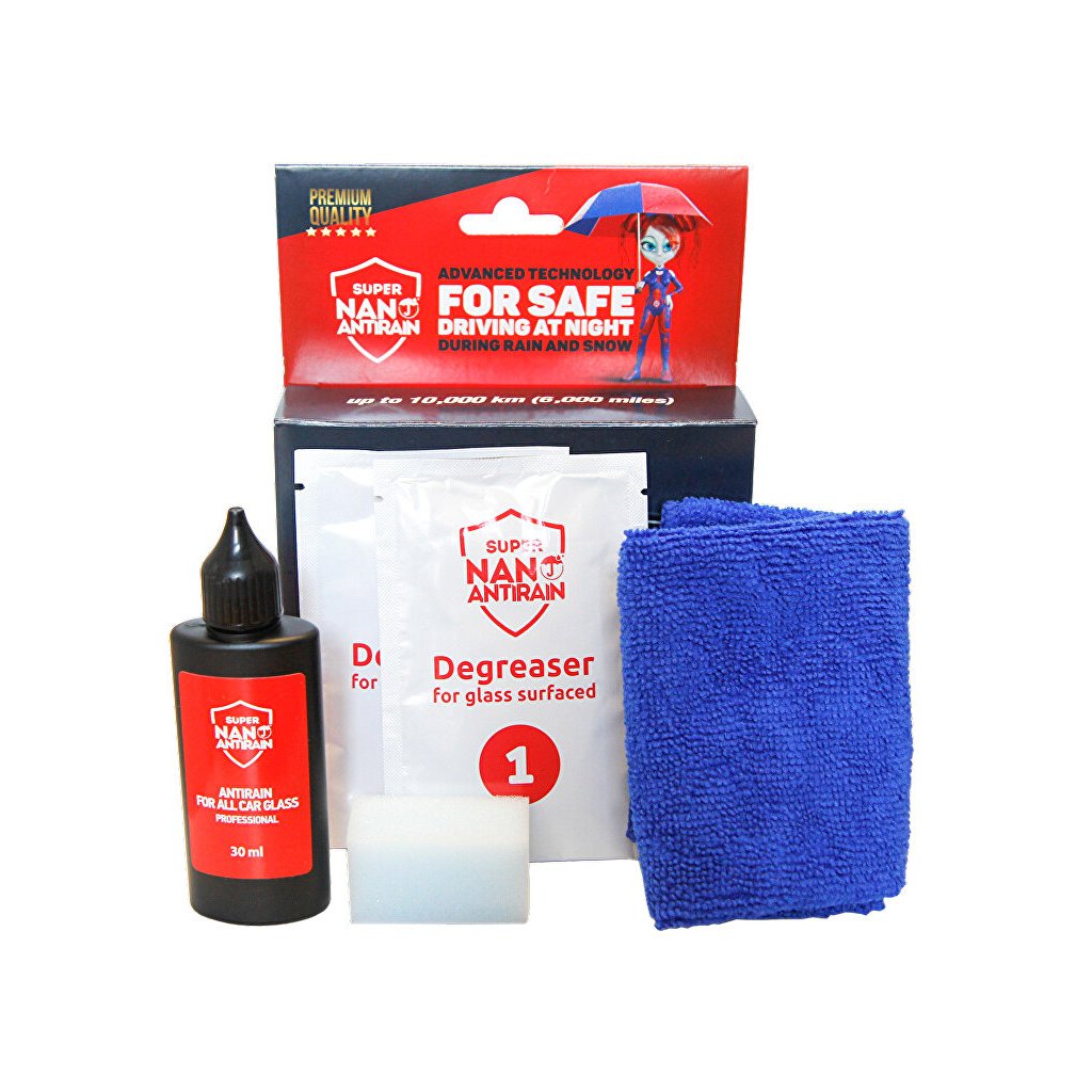 Nanoprotech Super Antirain bojuje se špatnou viditelností, nadměrnou spotřebou kapaliny do ostřikovačů a výrazně usnadňuje odstraňování námrazy ze skla. Pri jízdě nad 60 km/h za špatného počasí téměř odpadá nutnost použití stěračů. Díky tomu výrazně zvyšuje viditelnost, a tím i bezpečnost jízdy. Sklo zároveň chrání pred nečistotami, námrazou, i mechanickým opotřebením.Přípravek Nanoprotech Super Antirain byl vyvinut s cílem zlepšit viditelnost při jízdě za špatného počasí, a zároveň chránit sklo před nadměrným ulpíváním nečistot. Produkt využívající nanotechnologii vytváří po aplikaci neviditelný ochranný povlak, který vyhlazuje povrch skla, poskytuje mu hydrofobní vlastnosti a výrazně omezuje jeho špinění, mlžení a namrzání.