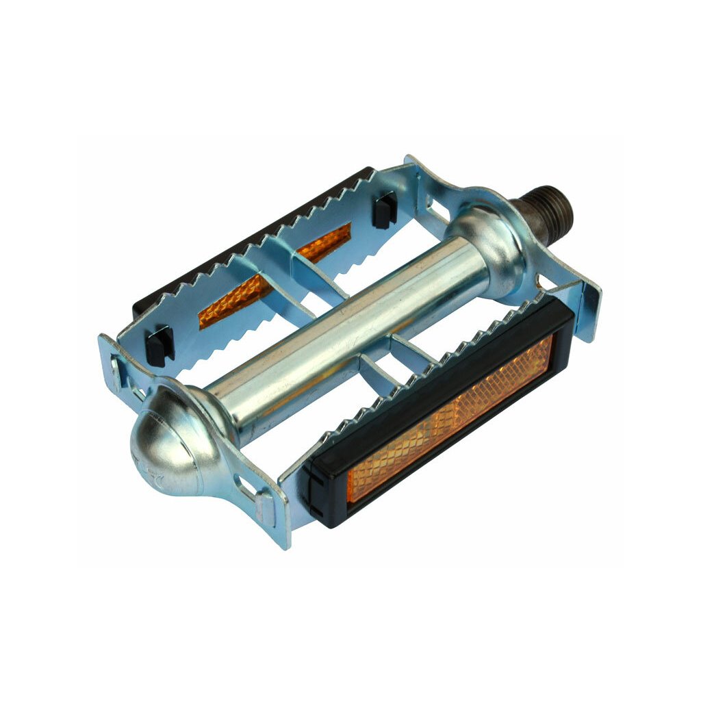 Pedály v retro stylu, jedny z prvních ohrádkových pedálů. Vybaveny odnímatelnými odrazkami, kuličková ložiska. Design vhodný k renomovaným bicyklovým veteránům.Výrobce: Cyklomax, spol. s r.o., Pardubická 504, 533 52 Srch. E-mail: info@cyklomax.cz