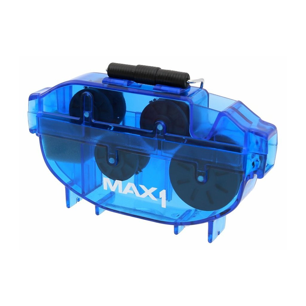 Praktická pračka MAX1 s držadlem na řetěz s bočními a vertikálními kartáči.Díky systému kartáčů pračka řetěz důkladně vyčistí a zajistí mu mnohonásobně delší životnost. Po vyčištění lze řetěz v pračce dokonale promazat, aniž byste znečistili kolo, brzdový systém, nebo podlahu.
