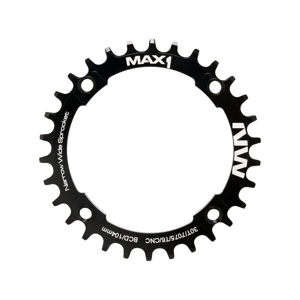Převodník MAX1 Narrow Wide pro montáž na kliky s roztečí 104mm.Tvar zubů zajišťuje hladký chod a stabilitu řetězu s převody 1x10 nebo 1x11, převodník je tedy možné použít jak na 10-ti, ale i 11-ti rychlostní řazení.