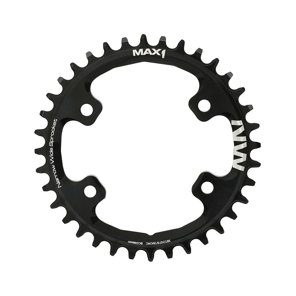 Převodník MAX1 Narrow Wide pro montáž na kliky s roztečí 96 mm.Tvar zubů zajišťuje hladký chod a stabilitu řetězu s převody 1x11/12, převodník je tedy možné použít jak na 11ti, ale i 12-ti rychlostní řazení.