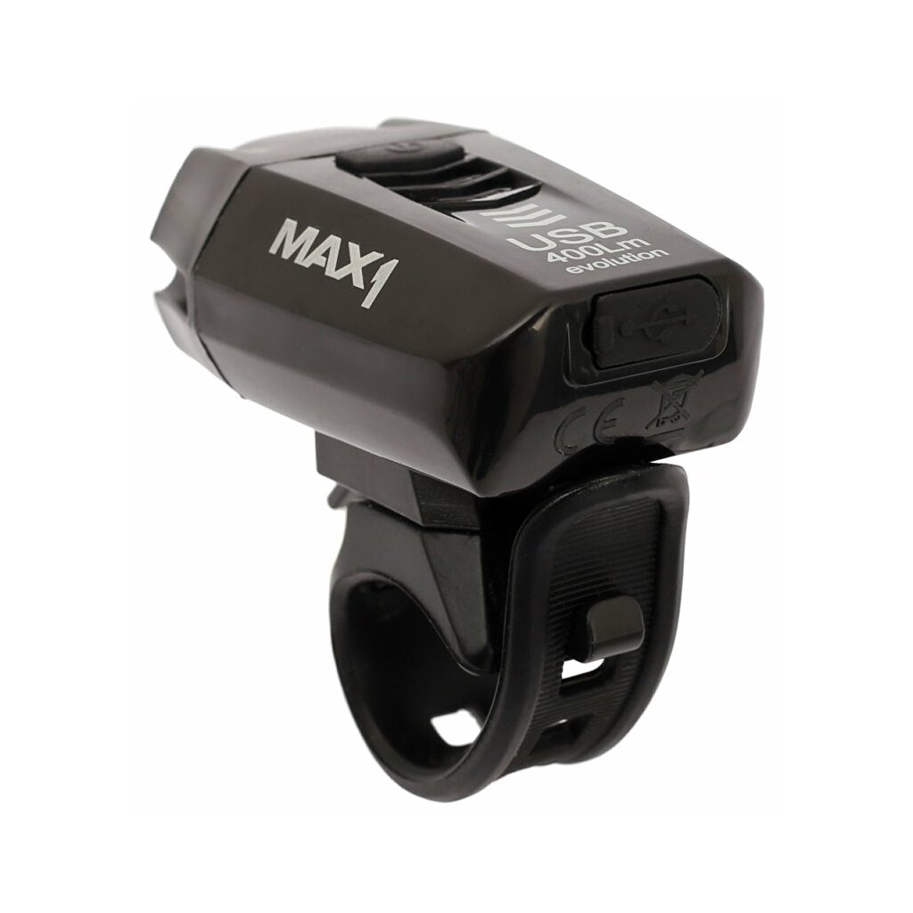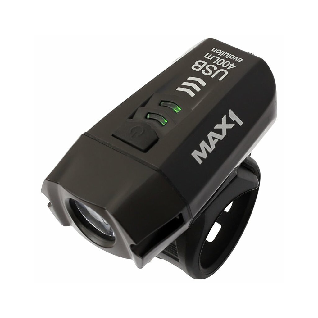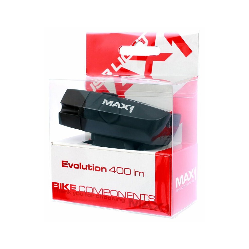 Výkonné dobíjecí světlo MAX1 Evolution 400 lm. Oblíbené přední světlo z kolekce MAX1. Vynikající poměr účinnosti / hmotnosti / ceny.Technické parametry: