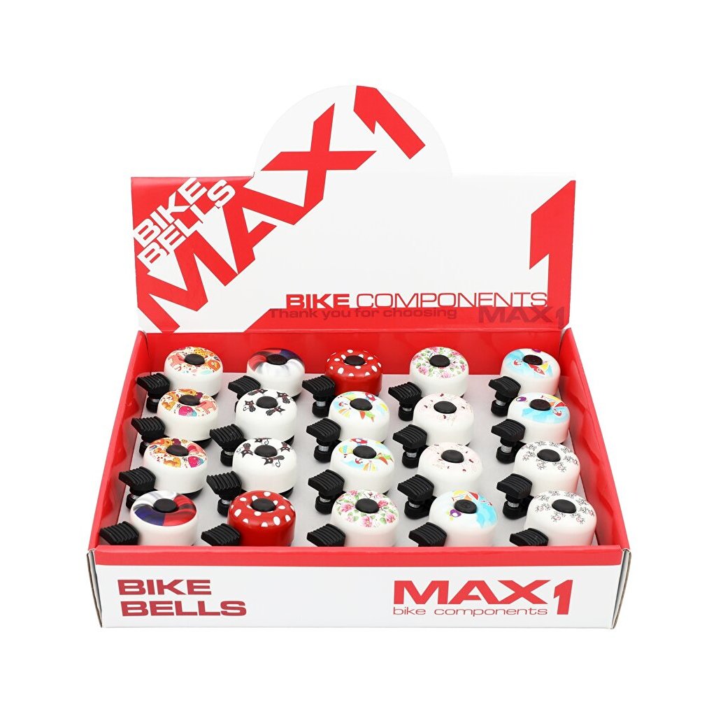 Sada zvonků na řidítka MAX1 Mini. !!Skladba motivů se může měnit!!- otočná palička v úhlu 360 st.