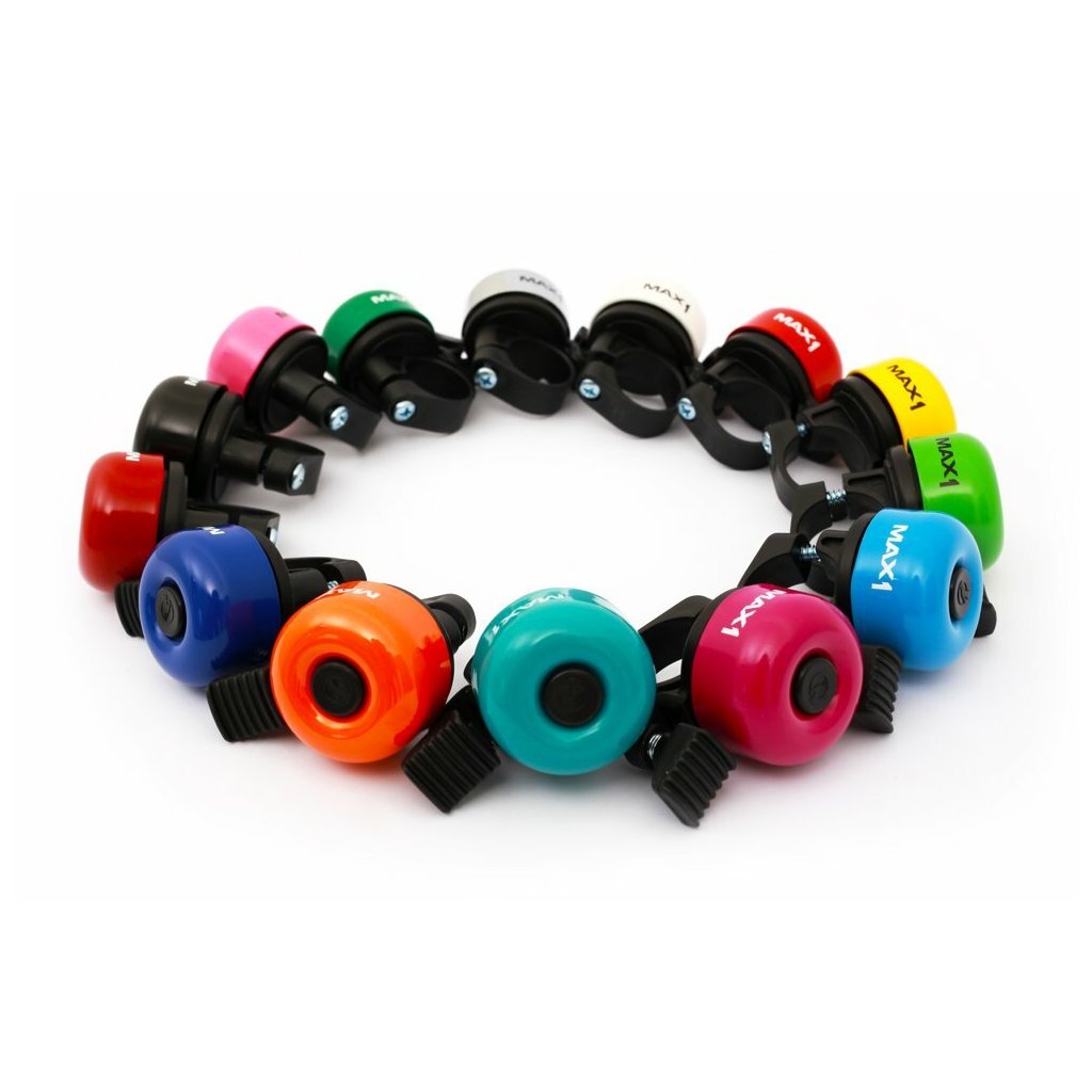 Sada zvonků na řidítka MAX1 Mini. !!Skladba barev se může měnit!!- otočná palička v úhlu 360 st.